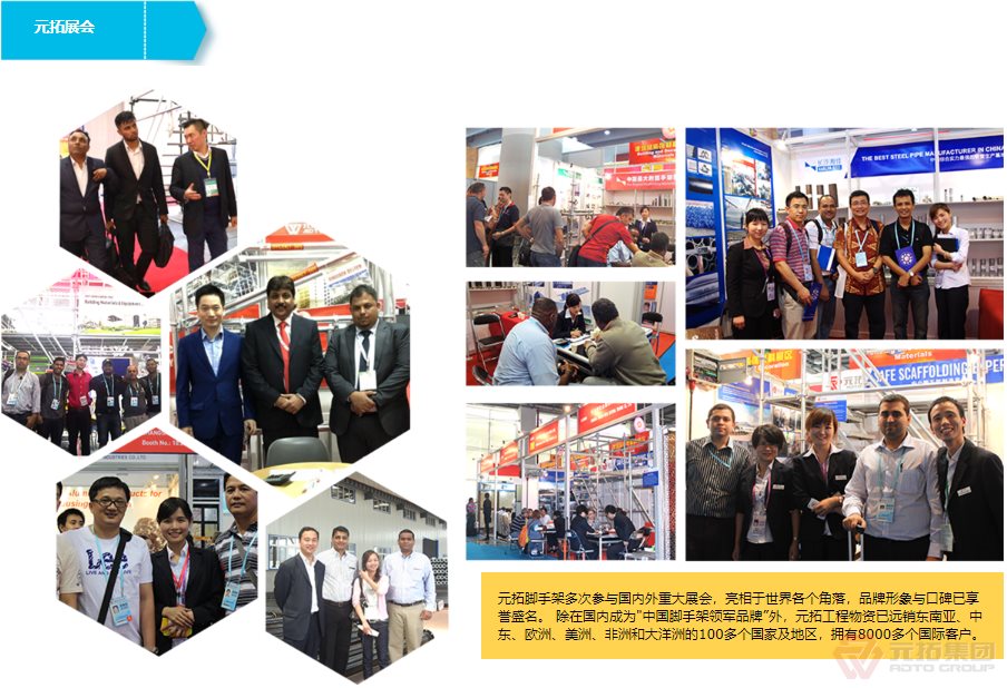 湖南元拓建材集團股份有限公司(簡稱:元拓建材集團)始創(chuàng)于1998年,以工程最前端的腳手架、鋁合金模板等產(chǎn)品為基礎,現(xiàn)已發(fā)展成為集房產(chǎn)、工程、材料全產(chǎn)業(yè)鏈服務及多元化發(fā)展的大型實業(yè)集團。元拓模架產(chǎn)業(yè)鏈板塊(簡稱元拓模架)隸屬于湖南元拓建材集團,提供模架產(chǎn)業(yè)鏈解決方案––全系模架產(chǎn)品(含國際)、模架租賃及托管、勞務施工、數(shù)字模架、營銷訂單解決方案、應收解決方案。 元拓模架深耕全球市場24年,目前擁有天津和順昌、湖北元拓鋁模兩大模架生產(chǎn)基地,長沙、青島、廣州三大子公司,埃及、印尼、迪拜、菲律賓等10多家海外子公司/辦事處。是中國石油、中國石化等世界知名石化施工企業(yè)指定供應商和世界各國優(yōu)秀工程施工企業(yè)長期戰(zhàn)略合作伙伴,銷售網(wǎng)絡遍布多個國家和地區(qū)。