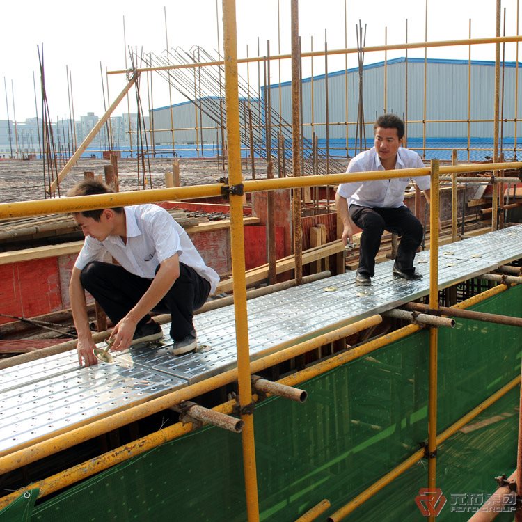 鋼踏是造船業(yè),修船廠及建筑、安裝企業(yè)施工工程中搭建腳手架配套使用的一種配套工具。我公司引進(jìn)韓國先進(jìn)全自動(dòng)鋼跳板生產(chǎn)流水線,生產(chǎn)速度快,年產(chǎn)量超千萬片,是國內(nèi)最大的建筑腳踏板制造商。本產(chǎn)品具有防火、重量輕、耐腐蝕、耐堿且抗壓強(qiáng)度高、表面凸孔帶翻邊防滑效果好,孔距整齊成型規(guī)范、外形美觀、經(jīng)久耐用(正常施工可連續(xù)使用6-8年)特有的漏沙孔防積沙特點(diǎn),尤其適合造船廠涂裝噴砂車間的使用。使用本產(chǎn)品時(shí),搭建腳手架的鋼管可以適當(dāng)減少,并能提高搭建效率。價(jià)格比木板低,多年后報(bào)廢仍可回收35%-40%的投資等優(yōu)點(diǎn),深受廣大造船業(yè),石油平臺(tái)、電力、建筑業(yè)的一致好評(píng)并被推廣使用。